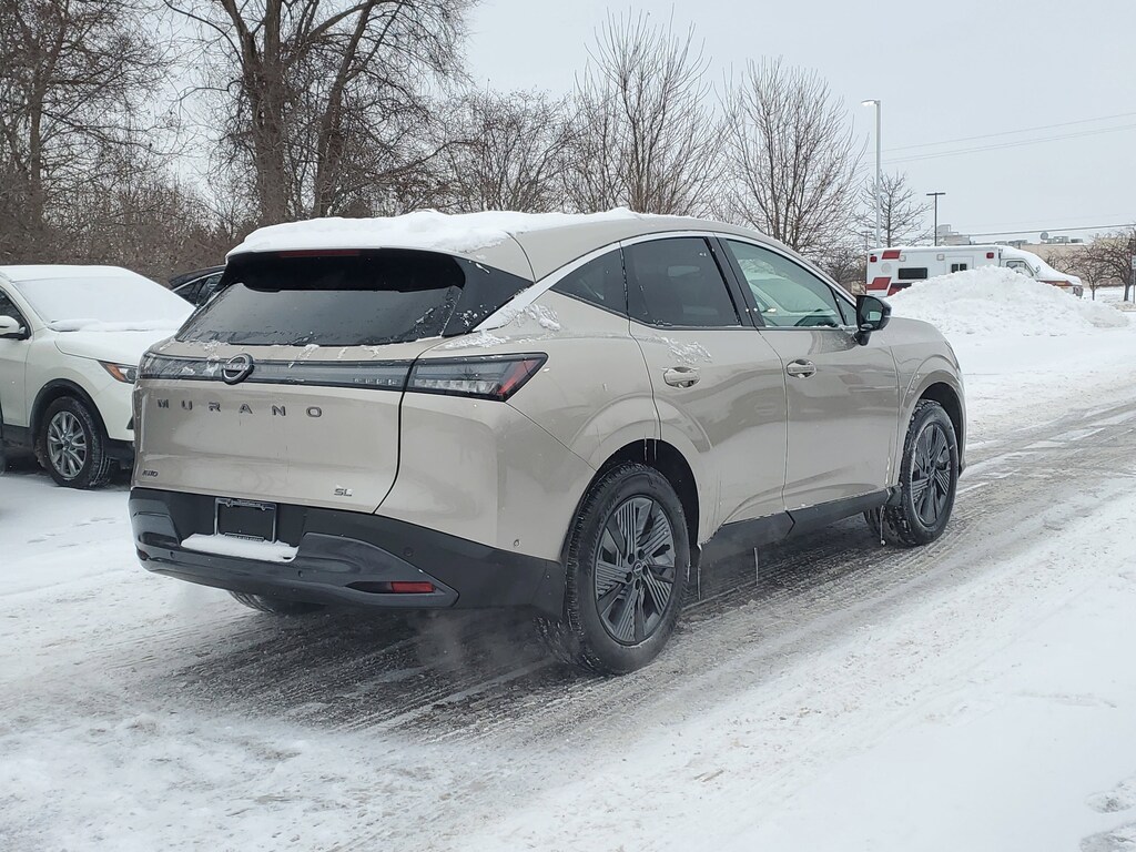 2025 Nissan Murano SL Champagne Silver Metallic Nissan Certified Certified, 9-Speed Automatic, AWD, 10 Speakers, 20" Alloy Wheels, 4-Wheel Disc Brakes, ABS brakes, Air Conditioning, Alloy wheels, AM/FM radio: SiriusXM w/360L, Auto High-beam Headlights, Auto-dimming Rear-View mirror, Automatic temperature control, Brake assist, Bumpers: body-color, Carpeted Floor & Cargo Mats, Child-Seat-Sensing Airbag, Compass, Delay-off headlights, Driver door bin, Driver vanity mirror, Dual front impact airbags, Dual front side impact airbags, Electronic Stability Control, Emergency communication system: NissanConnect Services, Four wheel independent suspension, Front anti-roll bar, Front Bucket Seats, Front Center Armrest, Front dual zone A/C, Front reading lights, Fully automatic headlights, Garage door transmitter: myQ Connected Garage, Grained Splash Guards, Heated door mirrors, Heated Front Bucket Seats, Heated front seats, Heated steering wheel, Illuminated entry, Knee airbag, Low tire pressure warning, Memory seat, Navigation system: NissanConnect with Navigation and Services, Occupant sensing airbag, Outside temperature display, Overhead airbag, Overhead console, Panic alarm, Passenger door bin, Passenger vanity mirror, Power door mirrors, Power driver seat, Power Liftgate, Power moonroof: Panoramic, Power passenger seat, Power steering, Power windows, PVC (Leatherette) Seat Trim, Radio data system, Radio: NissanConnect w/Hybrid Radio, Rear anti-roll bar, Rear reading lights, Rear seat center armrest, Rear side impact airbag, Rear window defroster, Rear window wiper, Remote keyless entry, Security system, Speed control, Speed-Sensitive Wipers, Split folding rear seat, Spoiler, Steering wheel mounted audio controls, Tachometer, Telescoping steering wheel, Tilt steering wheel, Traction control, Trip computer, Turn signal indicator mirrors, Variably intermittent wipers, Wireless Apple CarPlay/Wireless Android Auto, 9-Speed Automatic, AWD. Certified. AWD I4 21/27 City/Highway MPG 9-Speed Automatic