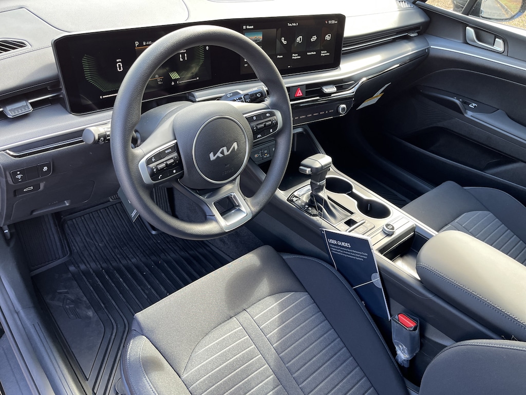 This Kia K5 has a strong Regular Unleaded I-4 2.5 L/152 engine powering this Automatic transmission. CARPETED FLOOR MATS, BLACK, CLOTH SEAT TRIM, AUTO-DIMMING MIRROR W/HOMELINK.