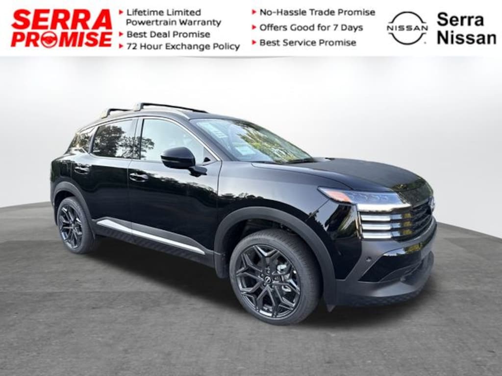 Super Black 2025 Nissan Kicks SR AWD CVT with Xtronic 2.0L DOHC Bluetooth, Backup Camera, Automatic Emergency Braking, Blind Spot Warning, Rear Cross Traffic Alert, Lane Departure Warning, Forward Collision Warning.