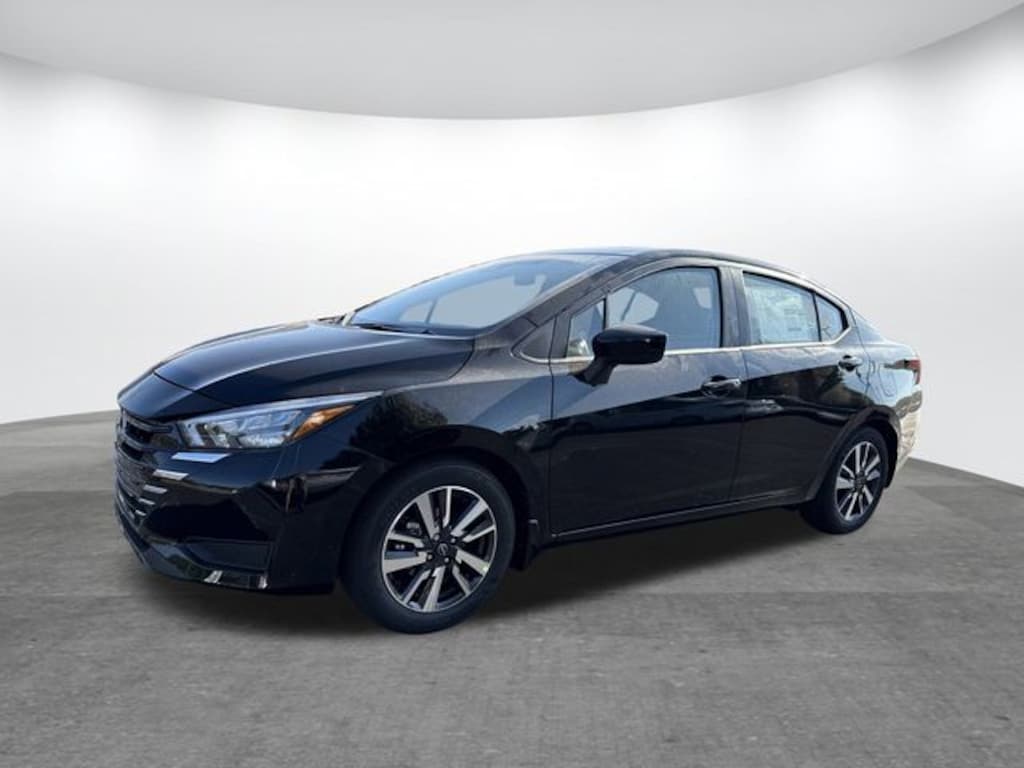 Super Black Metallic 2025 Nissan Versa 1.6 SV FWD CVT 1.6L I4 DOHC 16V Bluetooth, Backup Camera, Automatic Emergency Braking, Blind Spot Warning, Rear Cross Traffic Alert, Lane Departure Warning, Forward Collision Warning.