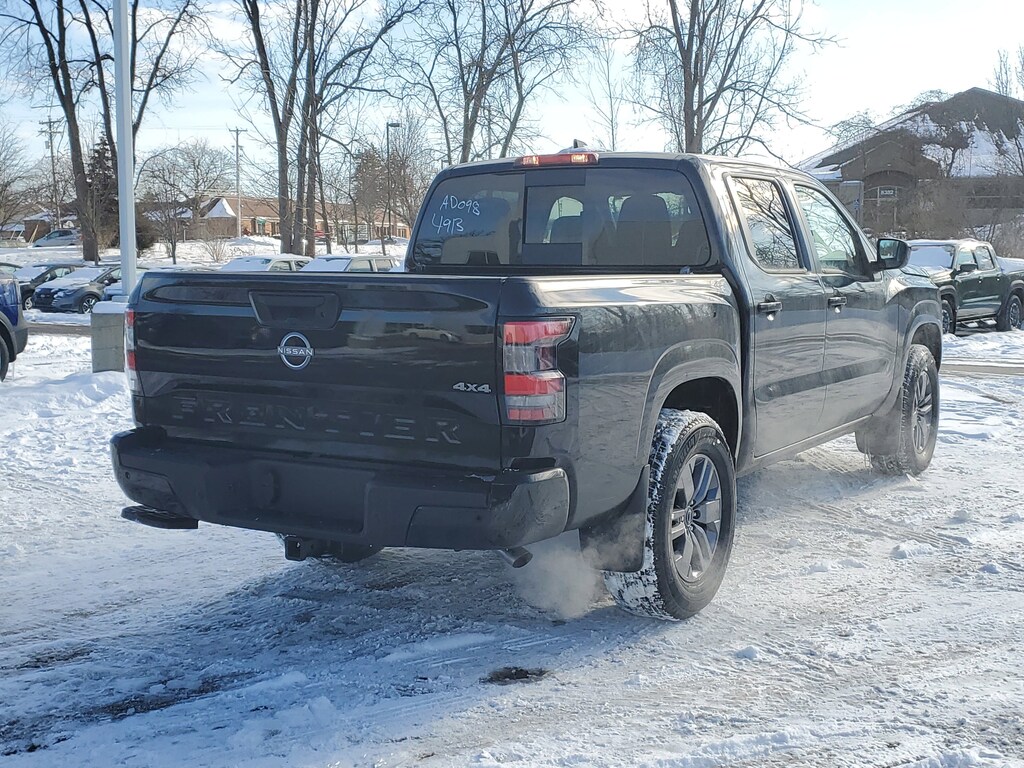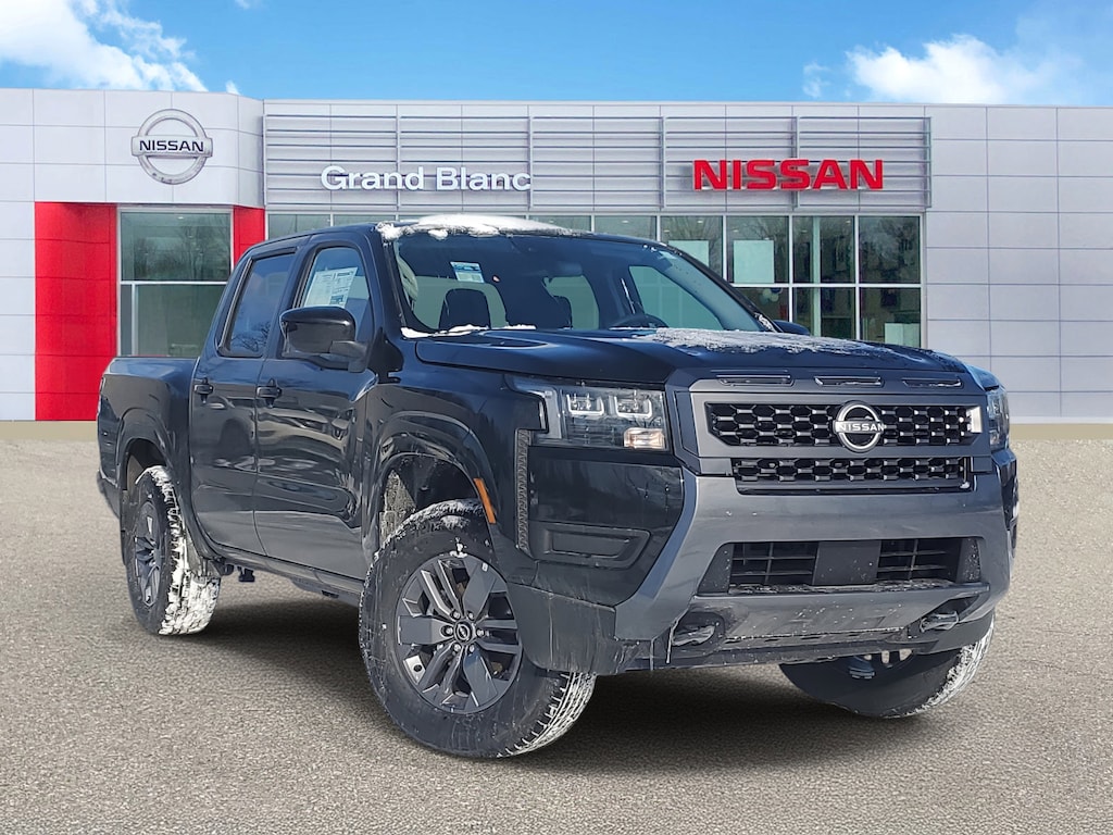 Super Black 2026 Nissan Frontier SV 4WD 9-Speed Automatic with Overdrive 3.8L DI DOHC 24V V6 4WD, 17" Alloy Wheels, 3.692 Axle Ratio, 4-Wheel Disc Brakes, 6 Speakers, ABS brakes, Air Conditioning, All Season Floor Mats, All-Weather Content Package, Alloy wheels, AM/FM radio: SiriusXM, Anti-whiplash front head restraints, Auto High-beam Headlights, Blind Spot Warning, Brake assist, Bumpers: body-color, Delay-off headlights, Driver door bin, Driver vanity mirror, Drop-In Bed Liner & Bumper Step, Dual front impact airbags, Dual front side impact airbags, Electronic Stability Control, Emergency communication system, Front anti-roll bar, Front Bucket Seats, Front Center Armrest, Front reading lights, Front wheel independent suspension, Fully automatic headlights, Heated Front Seats, Heated Leather Steering Wheel, HVAC - Dual-Zone Front Auto A/C, Illuminated entry, Knee airbag, Low tire pressure warning, Occupant sensing airbag, Overhead airbag, Overhead console, Panic alarm, Passenger door bin, Passenger vanity mirror, Power door mirrors, Power driver seat, Power steering, Power windows, Premium Cloth Seat Trim, Radio data system, Radio: SXM/AM/FM/AUX/USB Audio System, Rear anti-roll bar, Rear seat center armrest, Rear side impact airbag, Rear step bumper, Remote Engine Starter, Remote keyless entry, Security system, Speed control, Speed-sensing steering, Splash Guards, Split folding rear seat, Steering wheel mounted audio controls, Tachometer, Telescoping steering wheel, Tilt steering wheel, Tow Package, Tow/Haul Mode Switch, Traction control, Trip computer, Variably intermittent wipers, Voltmeter, Wireless Apple CarPlay/Wireless Android Auto, 4WD.