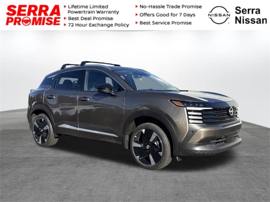 The team at Serra Nissan VW are here for you! Give us the opportunity and you will not be disappointed! We want to make your experience enjoyable, quick, and efficient. Price includes: All manufacturer bonuses and dealer discounts.You must finance with manufacturer at the standard rate based on manufacturer credit approval tiers 1-9.Price does not include destination fee. Price does not include dealer installed options.$1000 - Nissan Customer Cash. Exp. 03/02/2026 $500 - Nissan SER MY26 Kicks (Excl. S) Drive and Thrive Customer Cash (Tennessee and Bi. Exp. 03/02/2026
