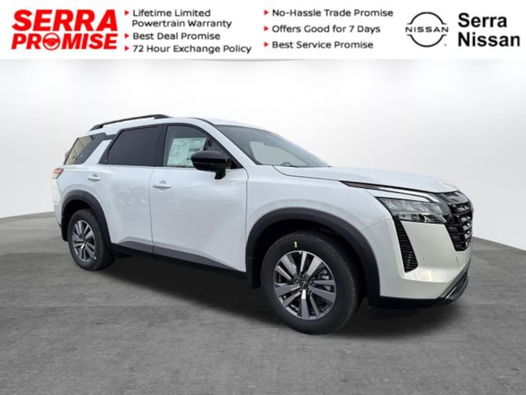 All new Nissan pricing includes all available incentives and our $799 dealership doc fee. Pricing does NOT include applicable taxes, titling fees or our Optional Serra Preferred Package . All standard factory incentives available to all customers applied in lieu of special financing. For new vehicle purchases, all sales include a limited lifetime Non-Factory Serra Warranty. All pricing and details are believed to be accurate, but we do not warrant or guarantee such accuracy. While every reasonable effort is made to ensure the accuracy of this information, we are not responsible for any errors or omissions contained on these pages. Please verify any information in question with the dealership.