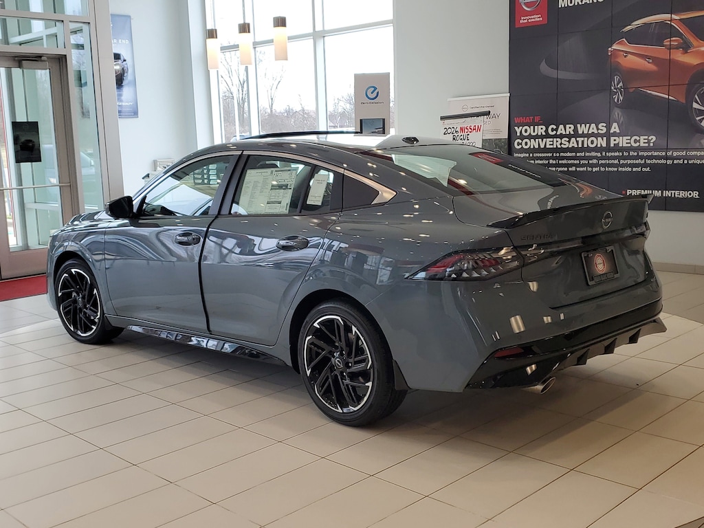 Atlantic Gray Metallic 2026 Nissan Sentra SR FWD CVT with Xtronic 2.0L I4 DOHC CVT with Xtronic, Sport Cloth, 18" Black Alloy Wheels, 18" Machined Alloy Wheels, 4-Wheel Disc Brakes, 6 Speakers, 6-Way Power Driver's Seat, ABS brakes, Air Conditioning, Alloy wheels, AM/FM radio: Sirius, Auto High-beam Headlights, Auto-Dimming Rear-View Mirror, Automatic temperature control, Body Colored Splash Guards (4-Piece), Bose Premium Audio System, Brake assist, Bumpers: body-color, Delay-off headlights, Digital Around View Monitor, Driver door bin, Driver vanity mirror, Dual front impact airbags, Dual front side impact airbags, Dual Zone Auto Climate Control, Electronic Stability Control, Floor Mat Package, Four wheel independent suspension, Front anti-roll bar, Front Bucket Seats, Front Center Armrest, Front reading lights, Fully automatic headlights, Garage door transmitter, Heated door mirrors, Heated Front Seats, Heated Steering Wheel, Illuminated entry, Interior Door Scuff Protection, Knee airbag, Leather steering wheel, Low tire pressure warning, Moving Object Detection (MOD), Occupant sensing airbag, Outside temperature display, Overhead airbag, Overhead console, Panic alarm, Passenger door bin, Passenger vanity mirror, Power door mirrors, Power steering, Power Tilt Sliding Sunroof with Manual Sunshade, Power windows, Premium Paint, Pro Pilot Assist, Radio data system, Radio: AM/FM with RDS/MP3, Rear anti-roll bar, Rear Automatic Emergency Braking, Rear Parking Sensor Aid, Rear seat center armrest, Rear side impact airbag, Rear window defroster, Remote keyless entry, Security system, Speed control, Speed-sensing steering, Split folding rear seat, Spoiler, Sport Cloth Seat Trim, Sport Leatherette Seat Trim, SR All Weather Package, SR Moonroof Package, SR Premium Package, Steering wheel mounted audio controls, Tachometer, Telescoping steering wheel, Tilt steering wheel, Traction control, Trip computer, Turn signal indicator mirrors, Variably intermittent wipers, Visor DR/AS w/LED Light, Wireless Apple CarPlay/Wireless Android Auto, CVT with Xtronic, Sport Cloth.