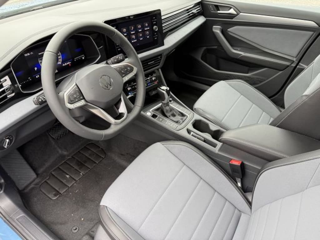 Monterey Blue Pearl 2026 Volkswagen Jetta 1.5T SE FWD 8-Speed Automatic with Tiptronic 1.5L I-4 DI DOHC Turbocharged Bluetooth, Backup Camera, Heated Seats, Automatic Emergency Braking, Blind Spot Warning, Rear Cross Traffic Alert, Lane Departure Warning, Forward Collision Warning, Grigio/Black Artificial Leather, Black Wheel Package, Wheels: 18" Dark Graphite Painted Alloy.